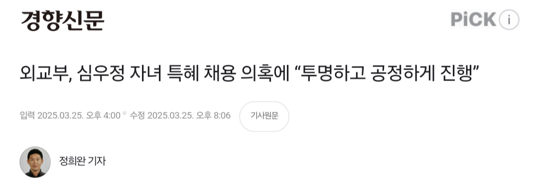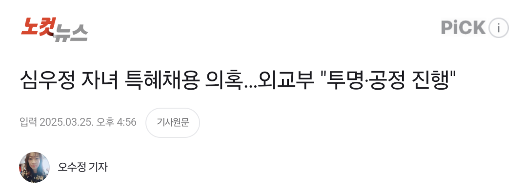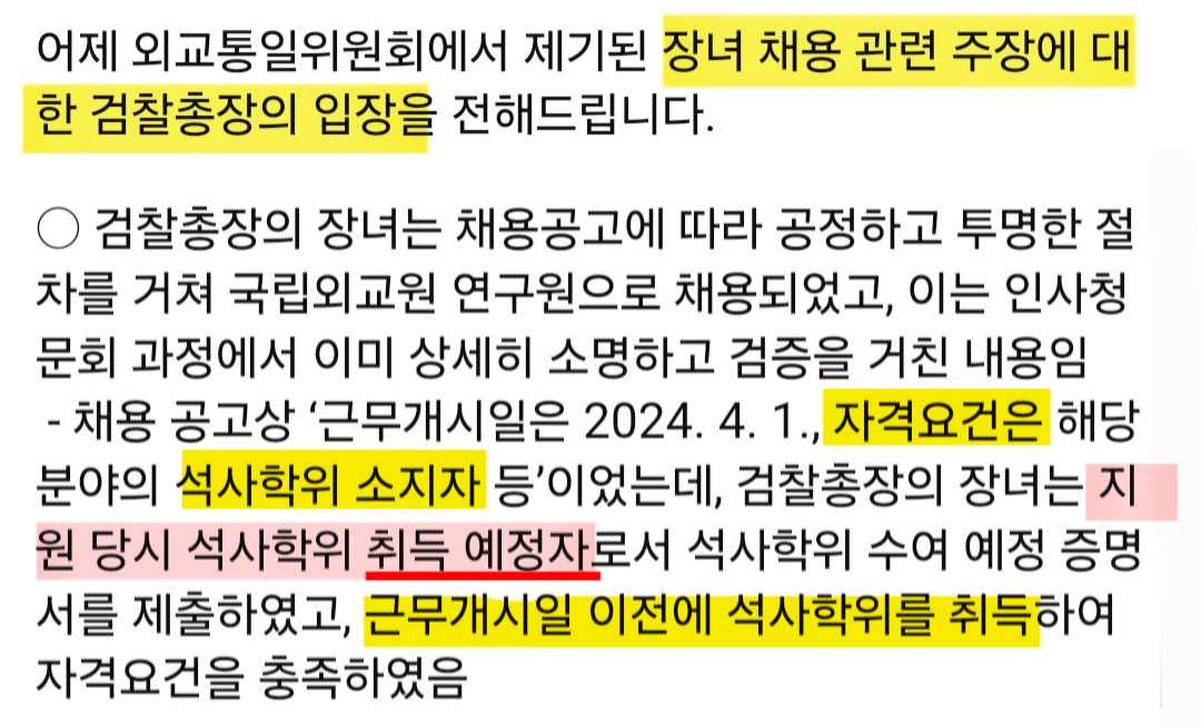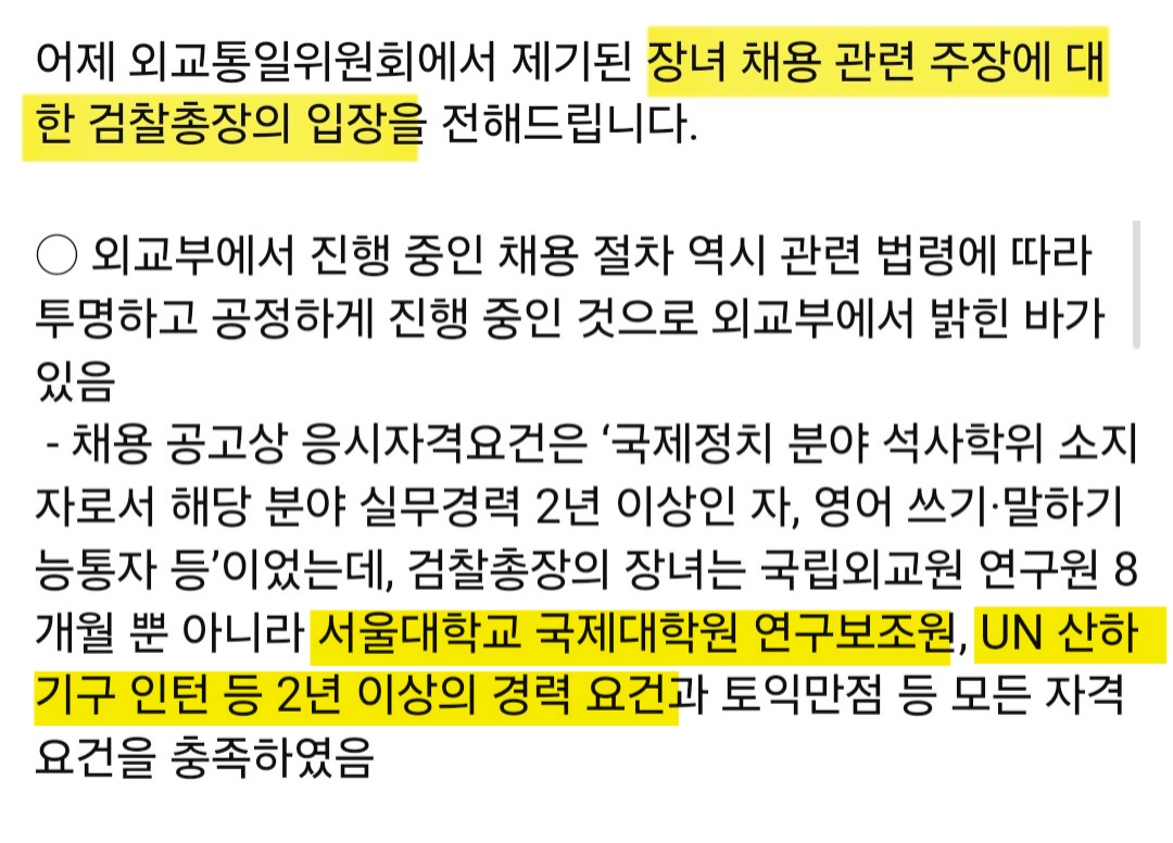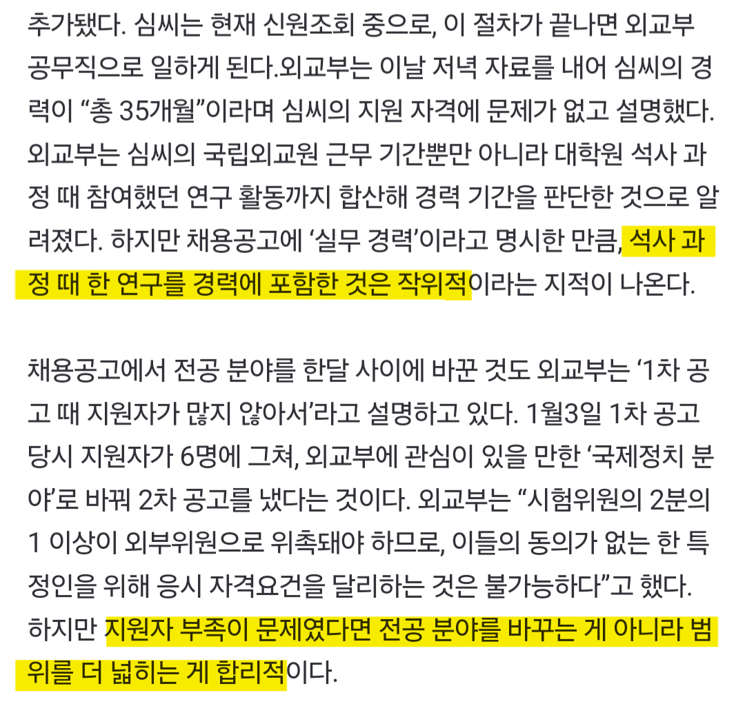 외교부 공식입장 : 채용 절차가 투명, 공정하게 진행됐다