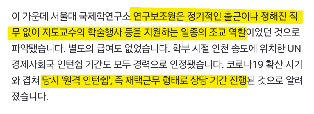 서울대 국제대학원 보조연구원과 un 산하 인턴은 해당 안됨
