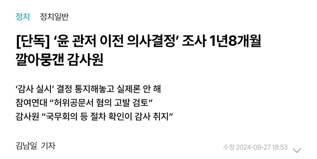 용와대 비리 감사 뭉갠 놈이... 감사원장.......??