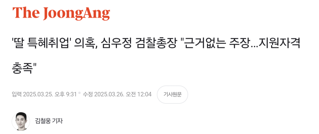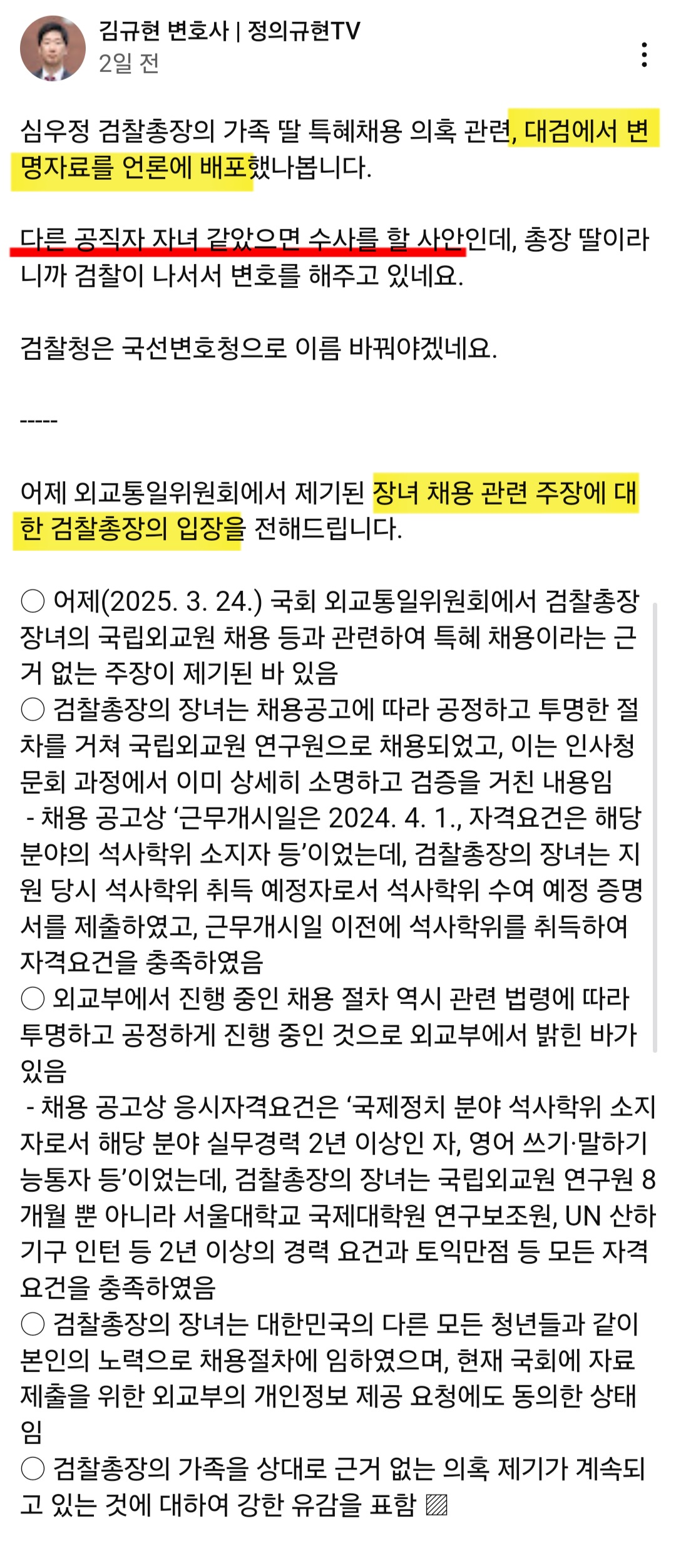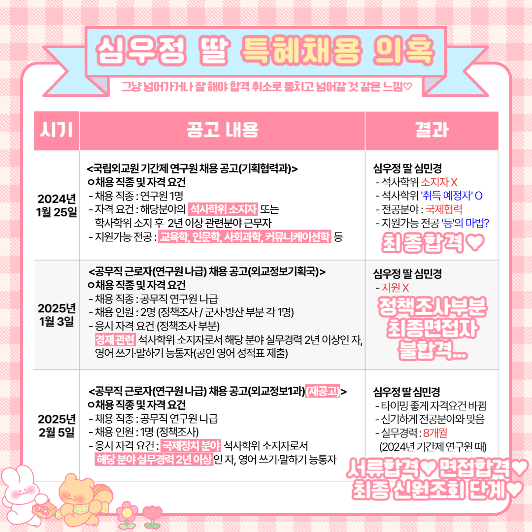 취소 되더라도 어딘가에서 또 심우정 딸 맞춤형 공고 뜰듯