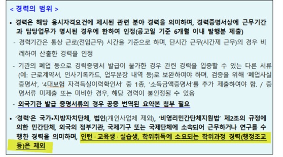 외교부에서 경력 범위를 지정하지 않았다네^^?