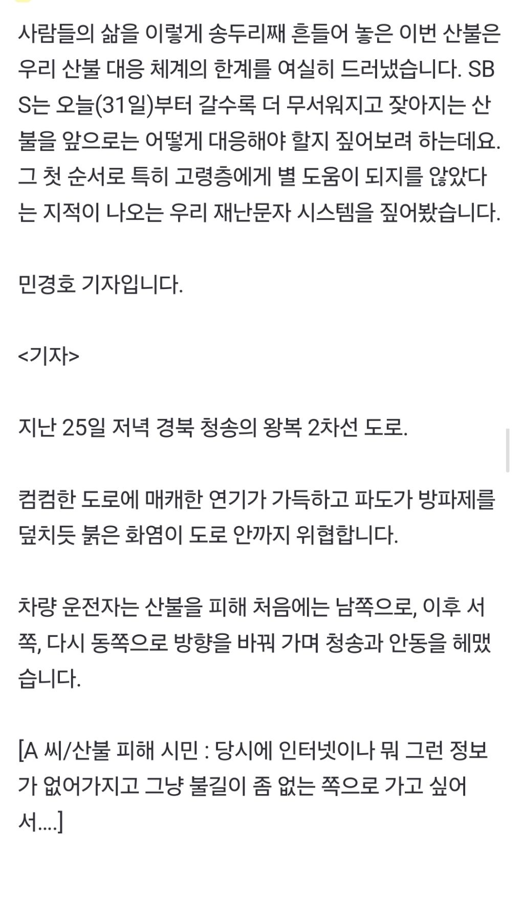 작성자유시아 작성시간 25.04.01 아니 진짜 지방에서 불 났으면 문자라도 제대로 보내덴가... 공중파중에 하나는 계속 재난방송하던지 ㅜㅜ 하다못해 밑에 자막이라도 깔아줘야하는거아니야? 나는 너무 답답하더라 산불 났을때 인근 지역이였는데 공중파에 정말 하나도 안나오더라...
