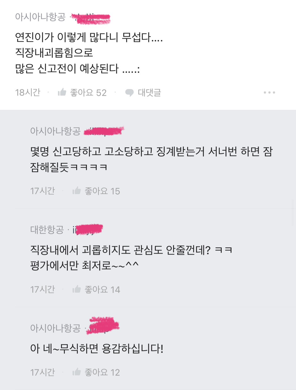 출처: 블라인드에 올라온 글 보셨어요? "같이 일하기 너무 싫음.... (항공 라운지)"