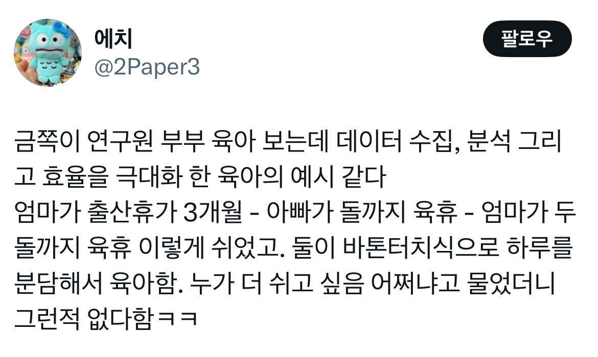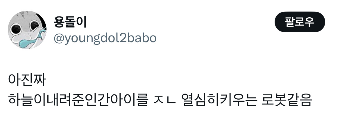[흥미돋]하늘이 내려준 인간 아이를 존나 열심히 키우는 로봇같음 (금쪽같은 내새끼)