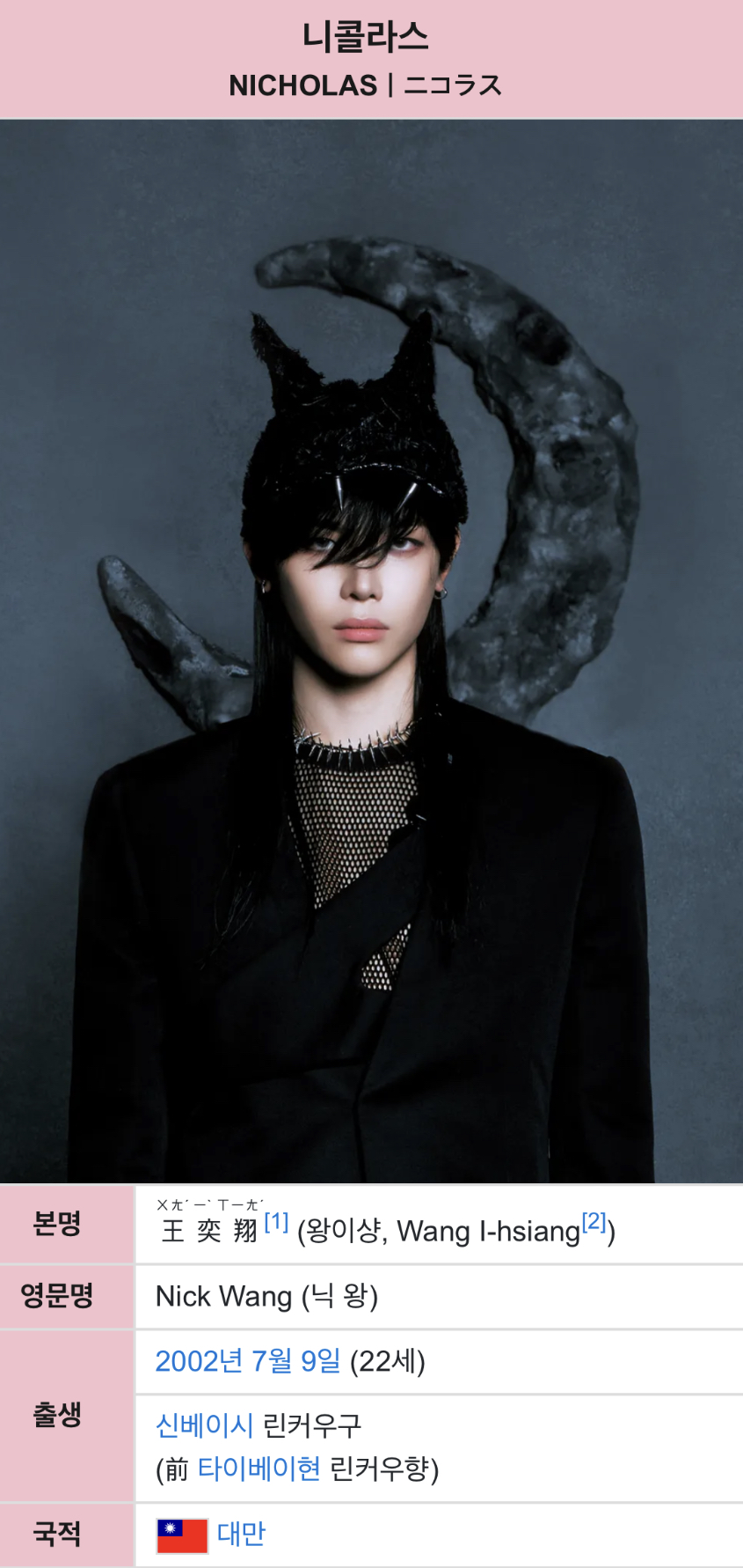한국 데뷔 안했고 일본 그룹이며 그중 니콜라스는 대만사람