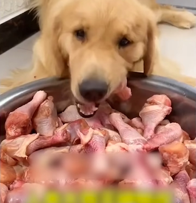 이 개들은 양푼 가득 쌓인 닭고기와 소 심장 등 엄청난 양의 음식을 먹어야 했습니다