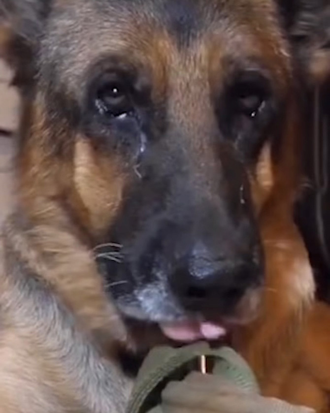 고추나 매운 닭고기를 강제로 먹은 개가 눈물을 흘리며 괴로워하자