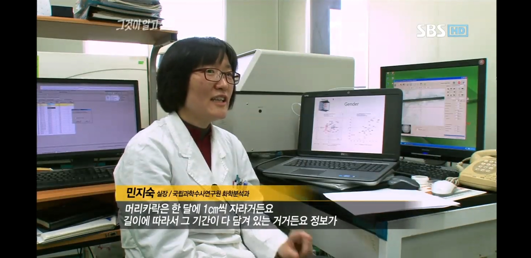머리카락에 나이테처럼 사람의 과거가 기록에 남는다고 함