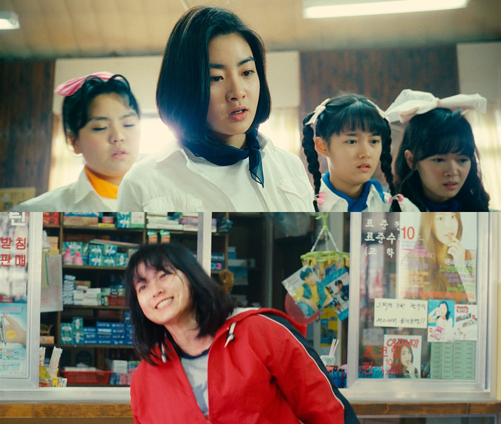춘화와 나미가 붙어있다 떨어지면서 뒤에 수지가 나타남.