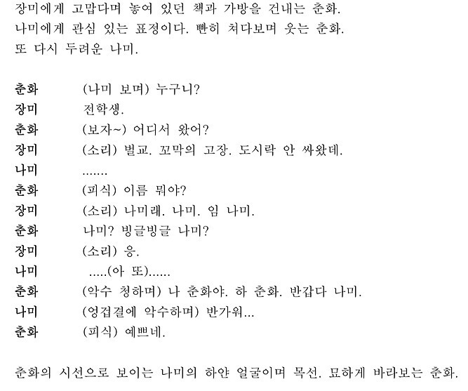 여기까지가 영화 속 첫만남인데 원래 대본은 더 미친 인소임