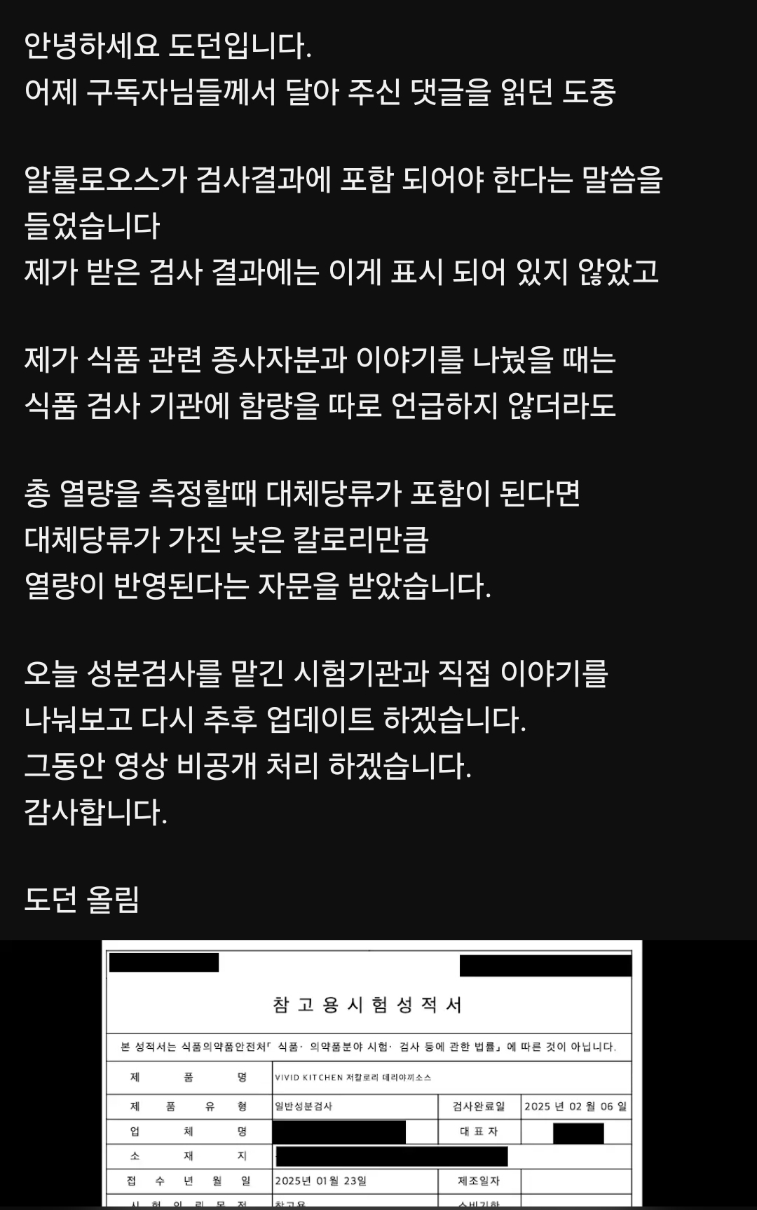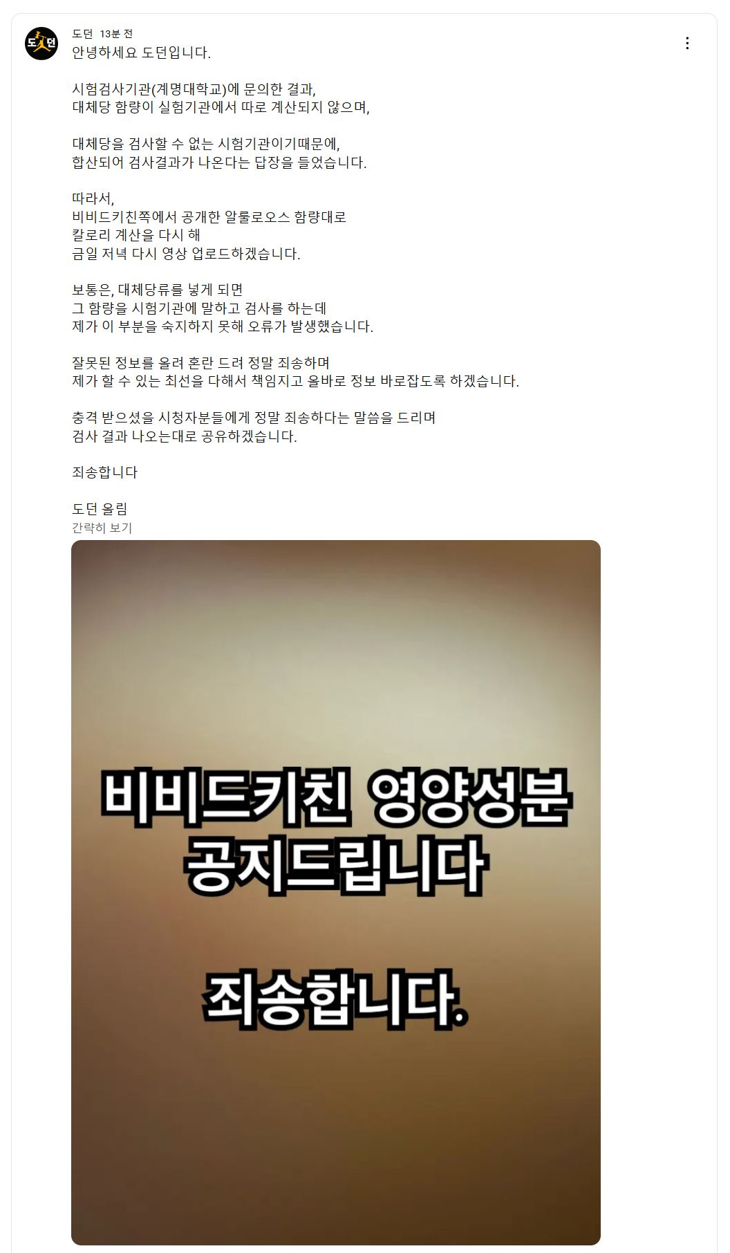 해당 유튜버 커뮤니티에 공지 올라와있네