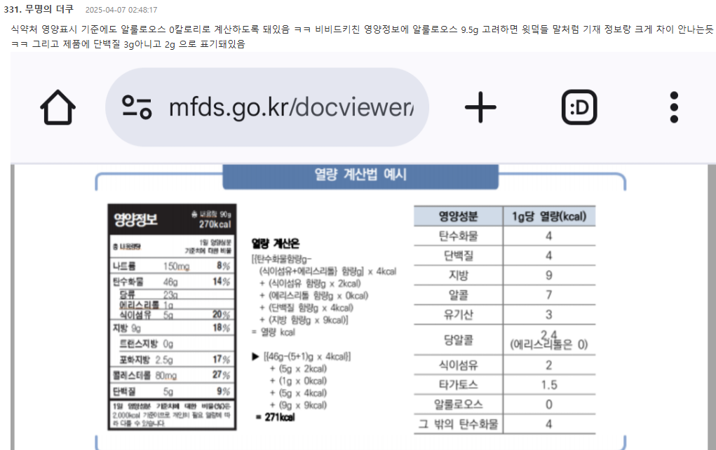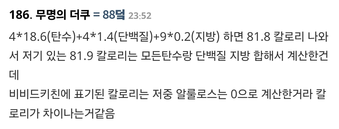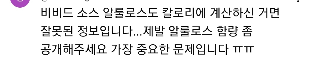 칼로리가 잘못 계산 되었다고 함