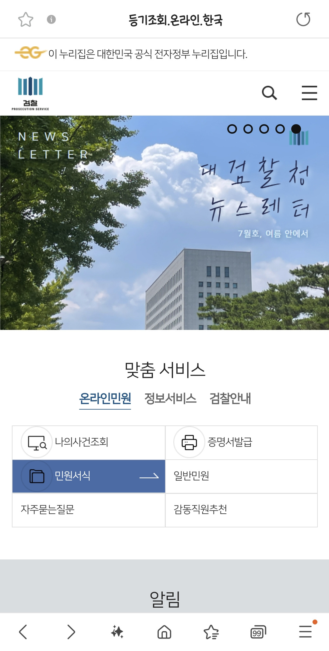 저 사이트 들어가면 나의사건조회 ㅡ 비회원인증만 눌리고 다른건 아무것도 안눌림