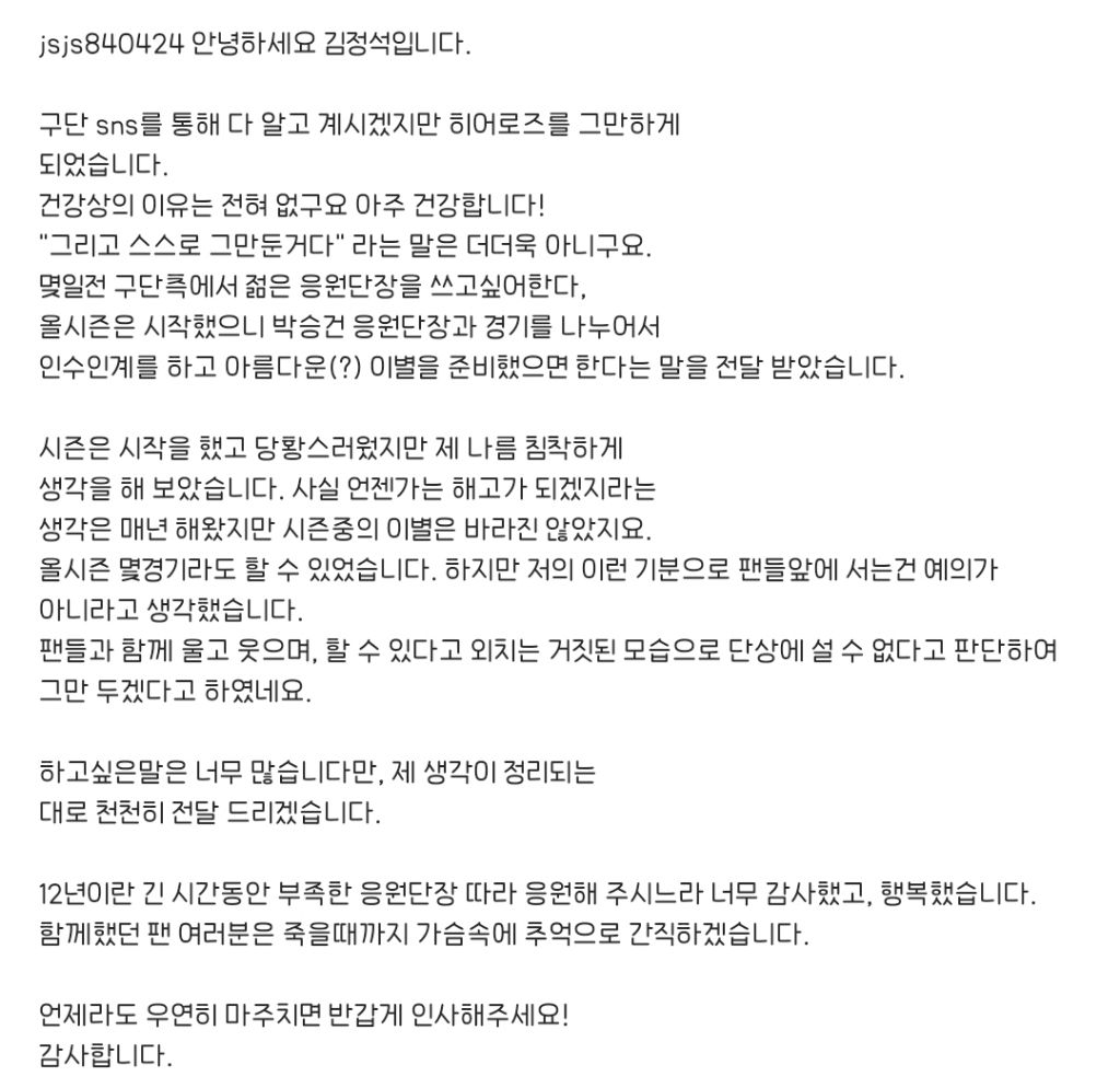 [기타][KBO] 젊은 응원단장 쓰고 싶다는 이유로 팬들과 오래 동행한 응원단장 시즌도중 잘라버린 키움 히어로즈 작성자말하는데|작성시간25.04.07|조회수20,708 목록 댓글 217 글자크기 작게가 글자크기 크게가 출처: 여성시대 말하는데로https://theqoo.net/square/3684693670더쿠 - [KBO] 젊은 응원단장 쓰고 싶다는 이유로 팬들과 오래 동행한 응원단장 시즌도중 잘라버린 여기를 눌러 링크를 확인하세요theqoo.net Instagram에서 이 게시물 보기 키움히어로즈 프로야구단(@heroesbaseballclub)님의 공유 게시물 구단 인스타에 올라온 글단장 본인이 올린 글인스타 댓보면 팬들도 구단 행동 비판하는듯 다음검색 현재 게시글 추가 기능 열기 북마크 공유하기 신고 센터로 신고 댓글 댓글 217 댓글쓰기 답글쓰기 댓글 리스트 작성자7번유격수 | 작성시간 25.04.08 바꿀 수는 있는데 이렇게 시즌 중 통보는 아니지...ㅠ... 작성자띠띠띠따따따 | 작성시간 25.04.08 개 싸 가 지 없다 진짜.. 작성자달빛 소년 | 작성시간 25.04.08 싹아지 작성자키움히어로 | 작성시간 25.04.09 아니 이제 개막했는데 지랄 똥을 싸네 작성자러브윈즈올 | 작성시간 25.04.09 와 이제 봤네 여전히 개싸가지가 없구나 참나 개미친구단 같으니라고 ㅋㅋ 댓글 전체보기