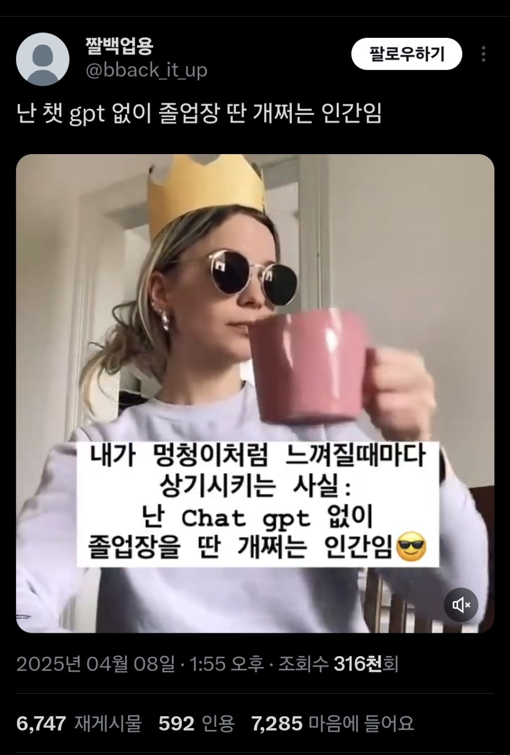 난 챗 gpt 없이 졸업장 딴 개쩌는 인간임 pic.twitter.com/TSo7aZEjsB