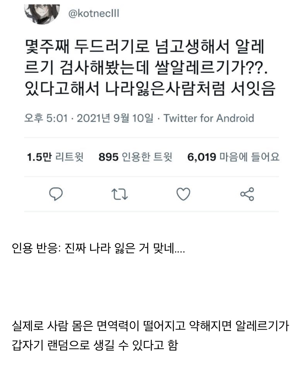 [스크랩] [흥미돋]몇주째 두드러기로 넘고생해서 알레르기 검사해봤는데...twt