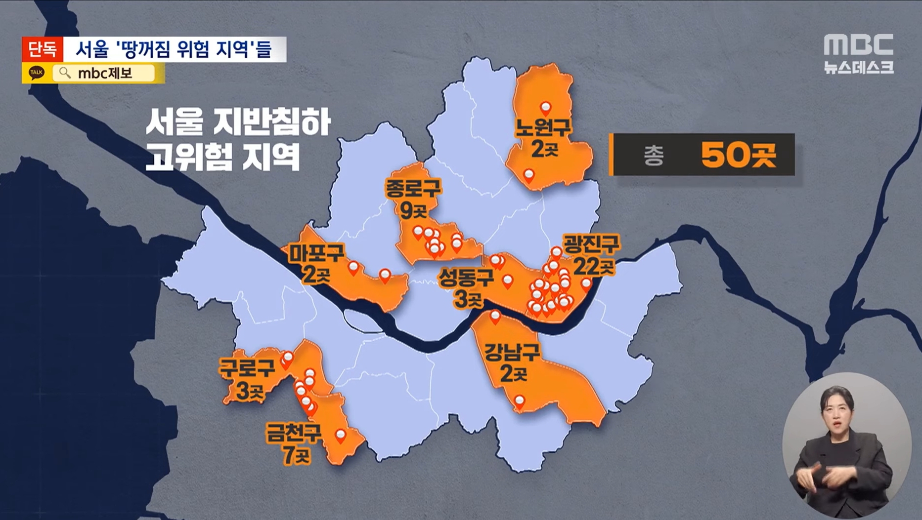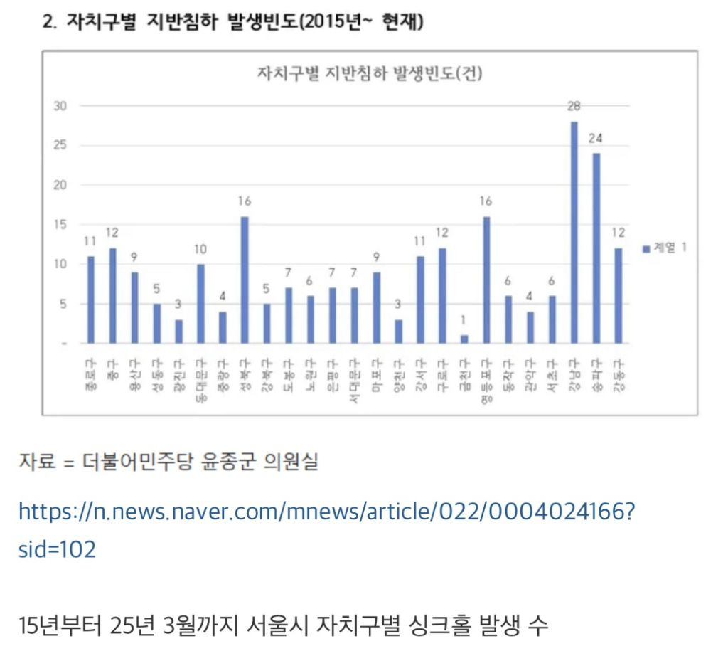 -> 서울 25개 자치구 중에서 땅꺼짐에 대해 양심있게 조사하고 자료를 제출한 건 딱 8곳임(광진, 성동, 강남, 마포, 종로, 노원, 금천, 구로)