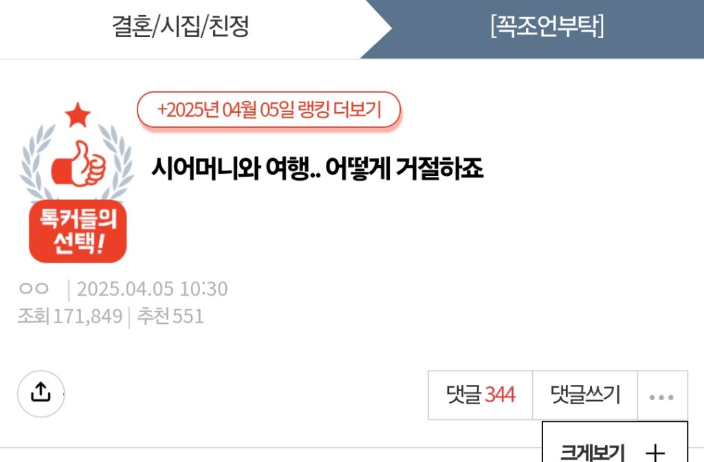 저 시어머니랑 사이 나쁘지 않아요. 평소엔 그냥저냥 무난하게 지내는 편인데 둘이 가기로한 여행에 이건 좀 아니잖아요...