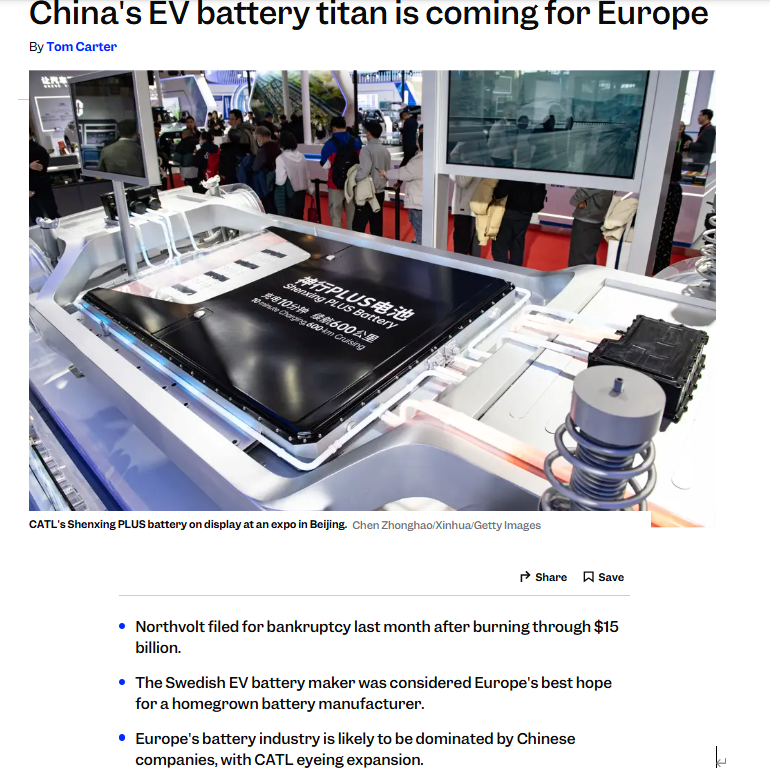 [유럽 배터리 산업 마지막 희망인 노스볼트마저 파산하고, 중국이 유럽 배터리 시장 장악할것으로 예상중]