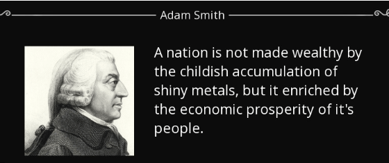 [애덤 스미스: 국가의 부유함은 귀금속을 얼마나 축적했느냐가 아닌, 국민들이 얼마나 풍족한지에 의해 결정된다]