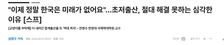 한국 저출산도 경제, 사회 인프라 붕괴는