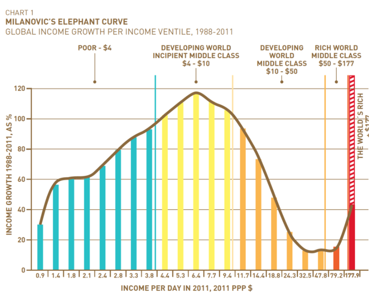 [세계화의 승자는 개발도상국 특히 중국의 노동자들, 선진국들의 부자들 / 패배자들은 선진국 중산층들]
