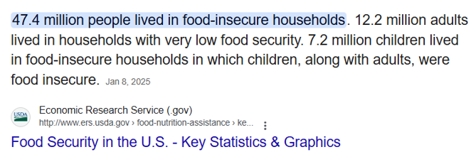 [미국인 4,740만명이 끼니를 거를 정도로 가난한 상황]