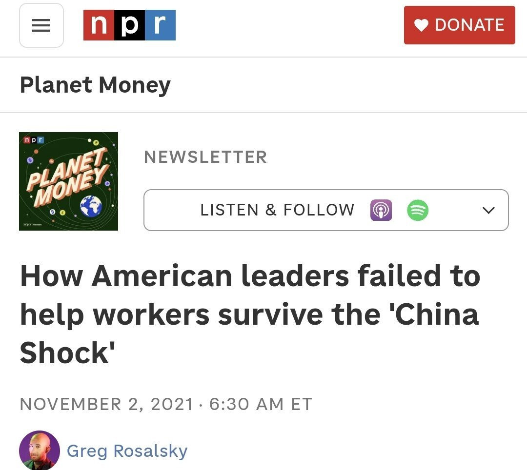 [ 중국에 의해 실직한 미국 노동자들이 살아남는걸 도와주는데 실패한 미국 정치권 ]
