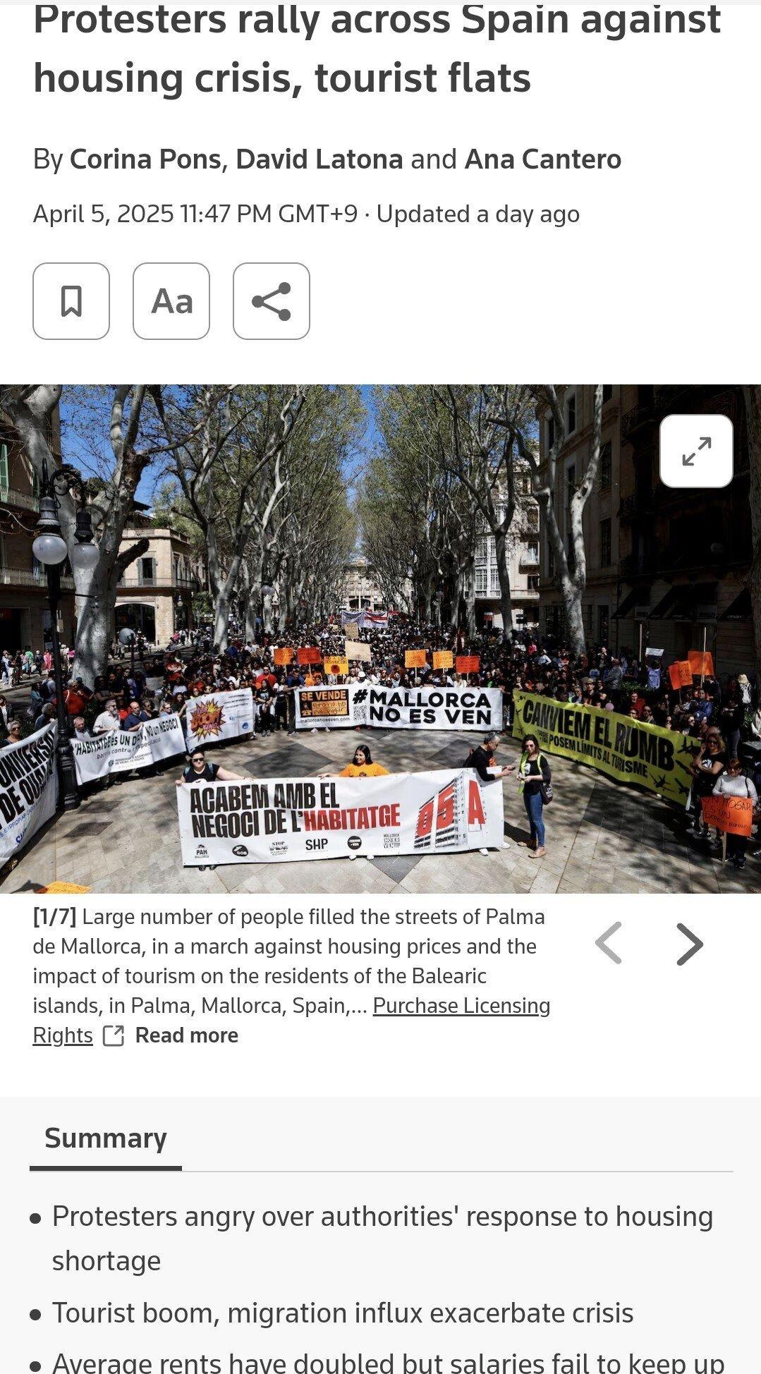 [ 무려 9400만명의 관광객이 방문해 역대 최고 관광업 호황으로 미국 성장률보다 높았지만, 주거 수요 폭등으로 월세가 2배 뛰어서 스페인 전역에서 시위 ]