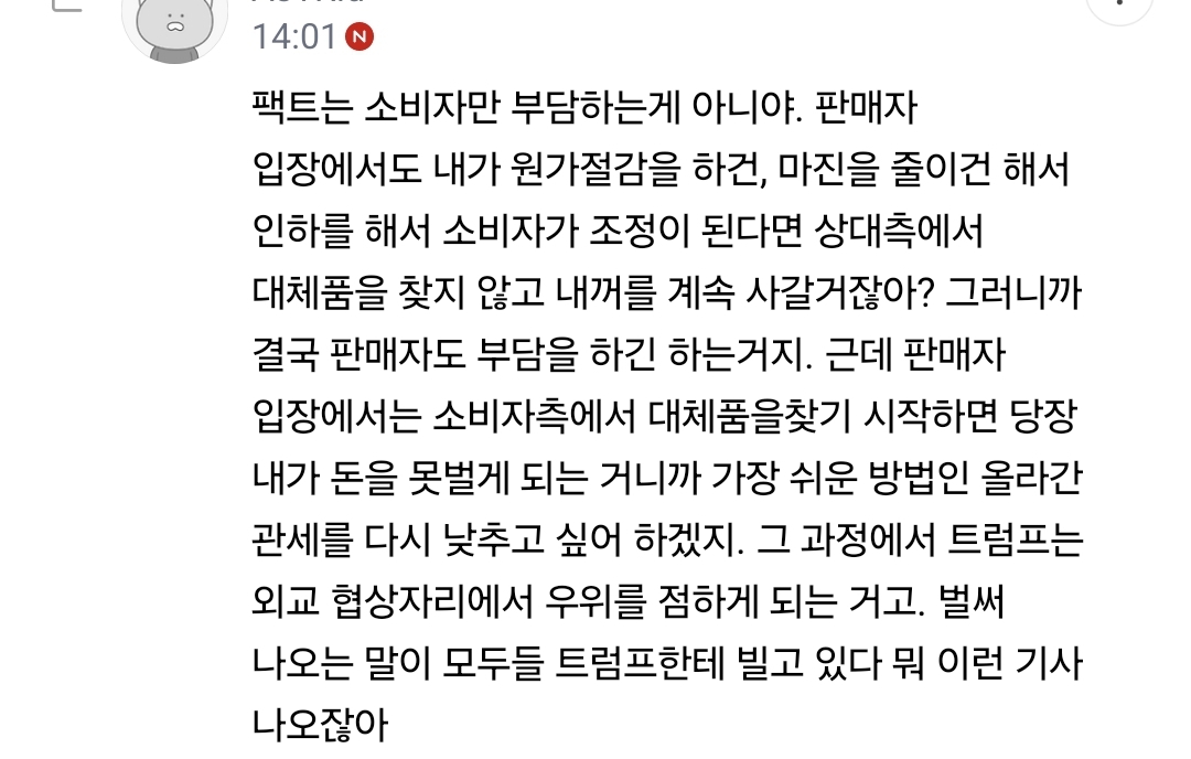 작성시간 25.04.11 자국민을 희생시켜서 정부 협상력을 높이는 셈이라는 말이 완전 딱이다 미친..