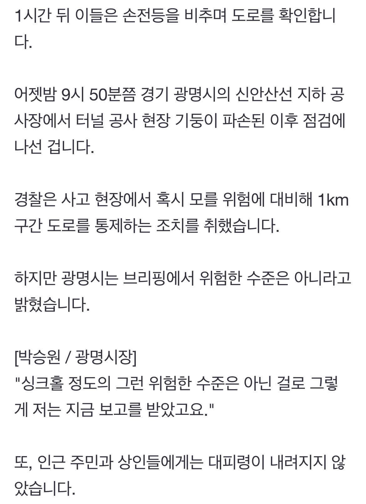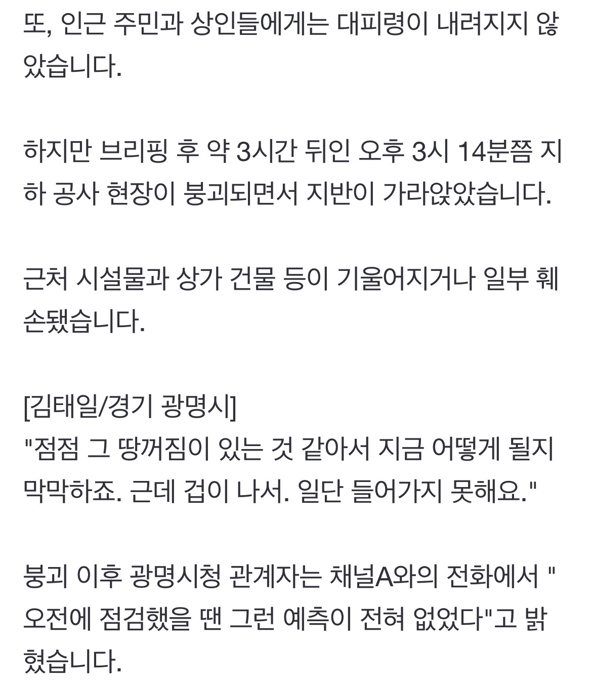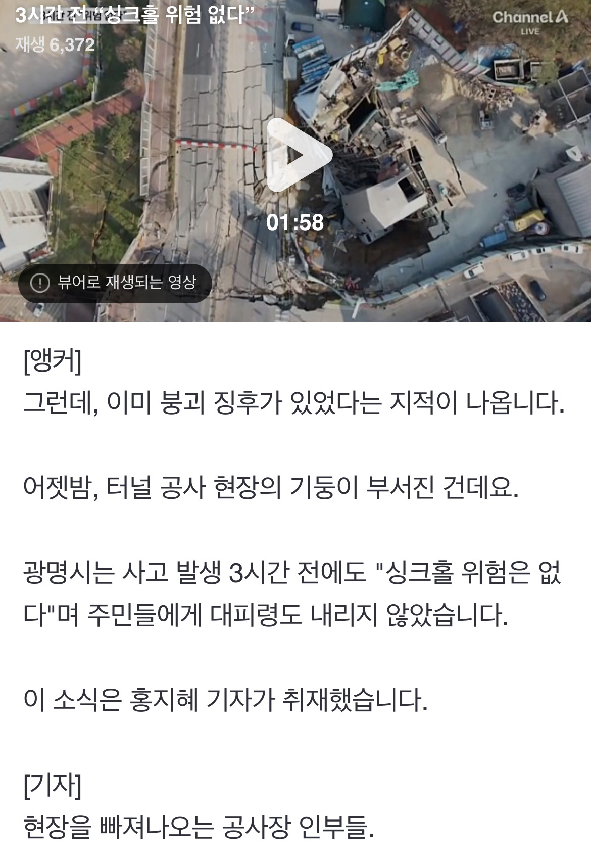 *여성시대* 차분한 20대들의 알흠다운 공간 [여시뉴스데스크]3시간 전 “싱크홀 위험 없다” 작성시간25.04.12|조회수15,554 목록 댓글 4 글자크기 작게가 글자크기 크게가 출처: https://naver.me/GalXQB3U 다음검색 현재 게시글 추가 기능 열기 북마크 공유하기 신고 센터로 신고 댓글 4 댓글 리스트 작성시간 25.04.12 그나마 시공사가 책임감있게 대처했네… 작성시간 25.04.12 대충 점검했나보네 저사람한테도 책임 물어야해 작성시간 25.04.12 근데 또 도로통제는 그날밤부터 했다며..? 그건 시청관계자가 하는거아녀..? 점검한 사람들이 어떻게 했는지가 관건이겠네 작성시간 25.04.12 양심있냐 카페 방문해 더 많은 댓글 만나기!