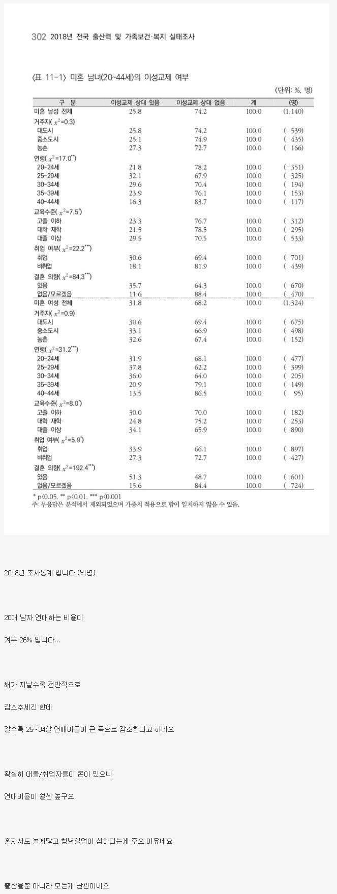 지금 20대 남자는 20퍼 20대 여자는 30퍼가 연애하는 시대인데