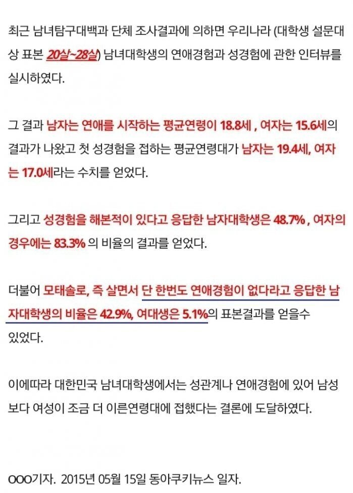 여기서 선택남들 빼고 평범한남만 연애 확률 조사해보면 더 기겁할 숫자 나올껄?