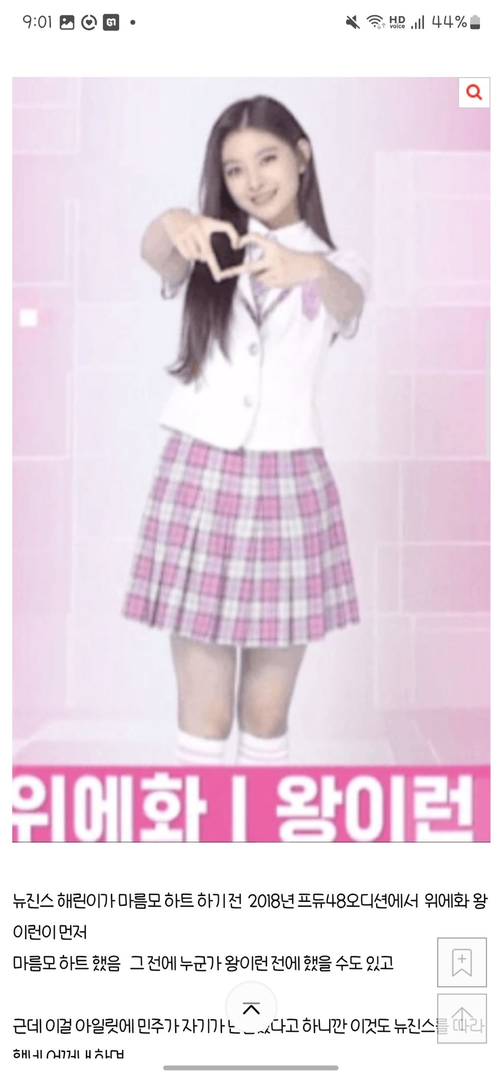 마름모하트라고 하면 해린밖에 안 나온다면서 일명 민주의 팝핀 하트가 해린을 따라했다고 하는 억까글이 올라왔었는데