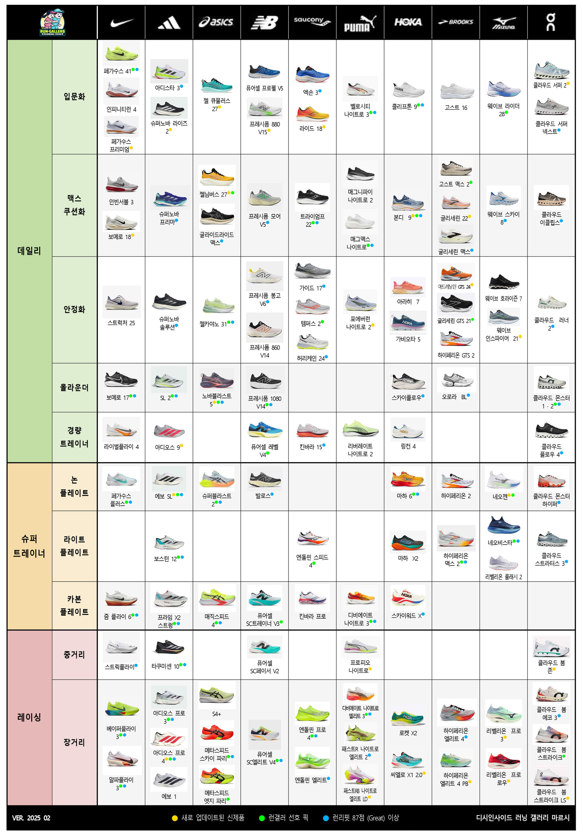 <브랜드별 러닝화 라인업 총정리>가 2025년 2월 최신 버전으로 업데이트 되었습니다! 🚀 (분기별 업데이트 진행)