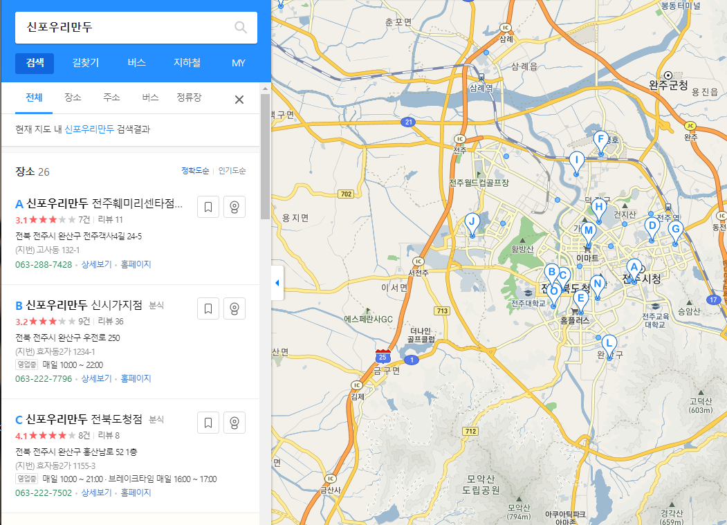 체인점이 전주에 거의 몰빵