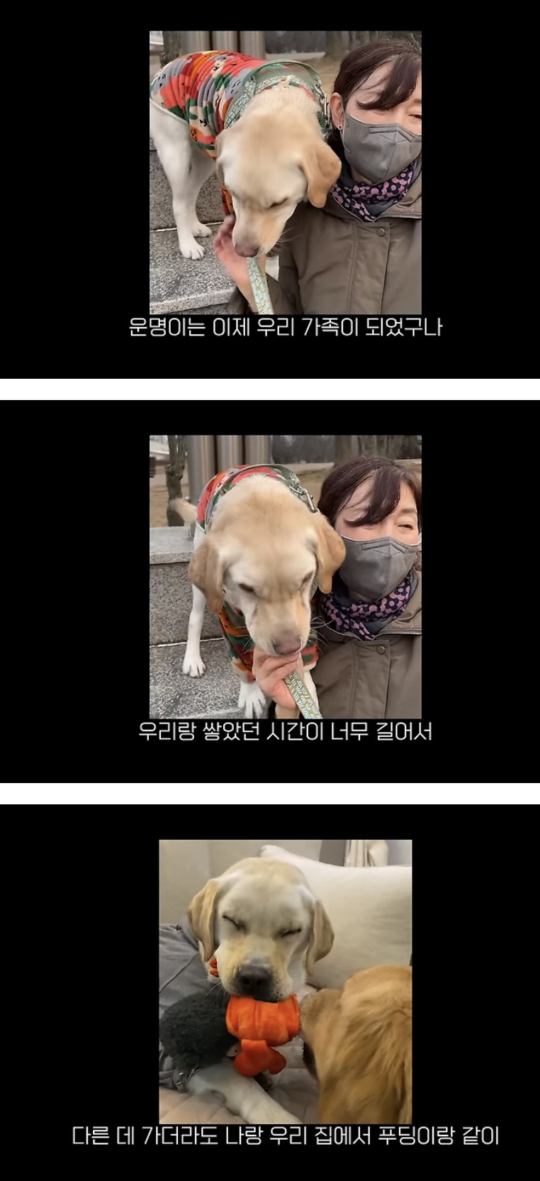 강쥐들 영상도 너무귀엽고 캡쳐에선 잘랐는데 영상엔 임시보호 강쥐 입양한 가족들 영상편지도 있어 ..!