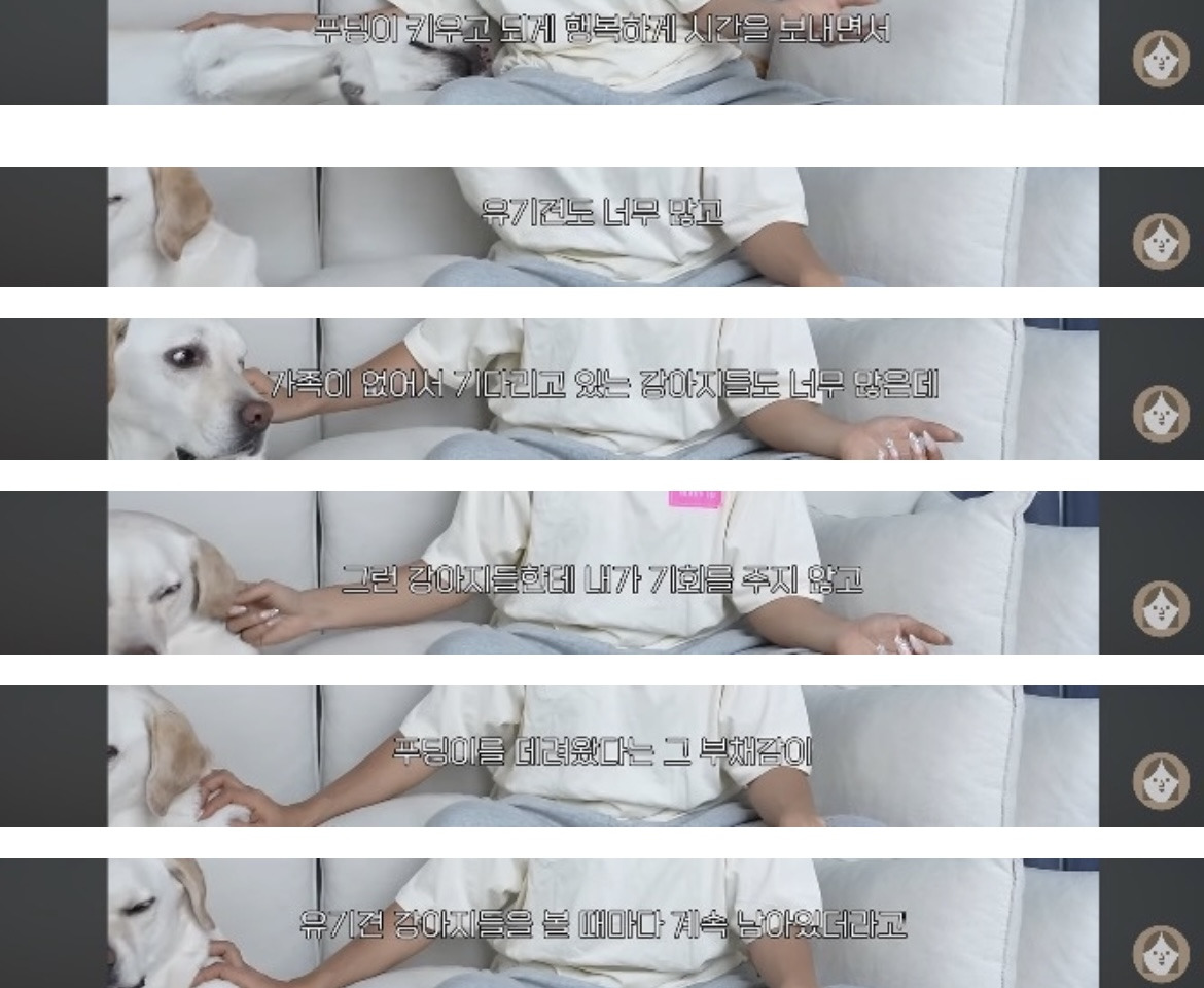 초반은 유기견 보호소 봉사영상이고 11분20초쯤부터 얘기 시작하는데 담캎 업뎃이후로 사진편집하면 화질저하가 심하더라고…잘 안보이면 사진을 눌러서 보거나 영상으로 보는걸 추천해..ㅠㅠ