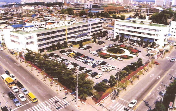 사천시청은 옛 삼천포와 사천 딱 중간에 있다
