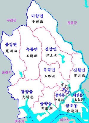 위 사진에서 '동' 부분이 옛 동광양시였는데