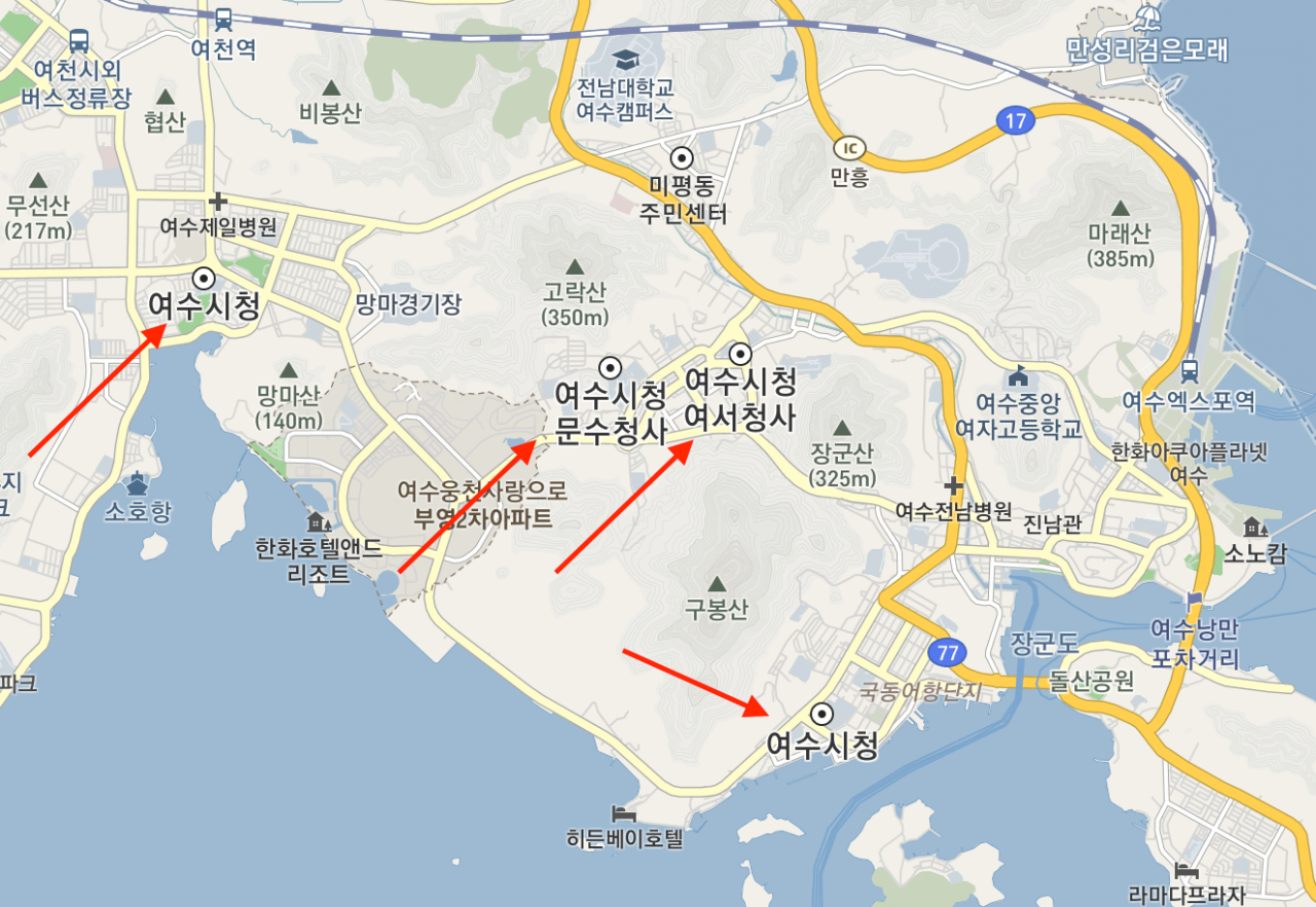 그래서 지도로 보면 여수시청 청사는 4개씩이나 된다