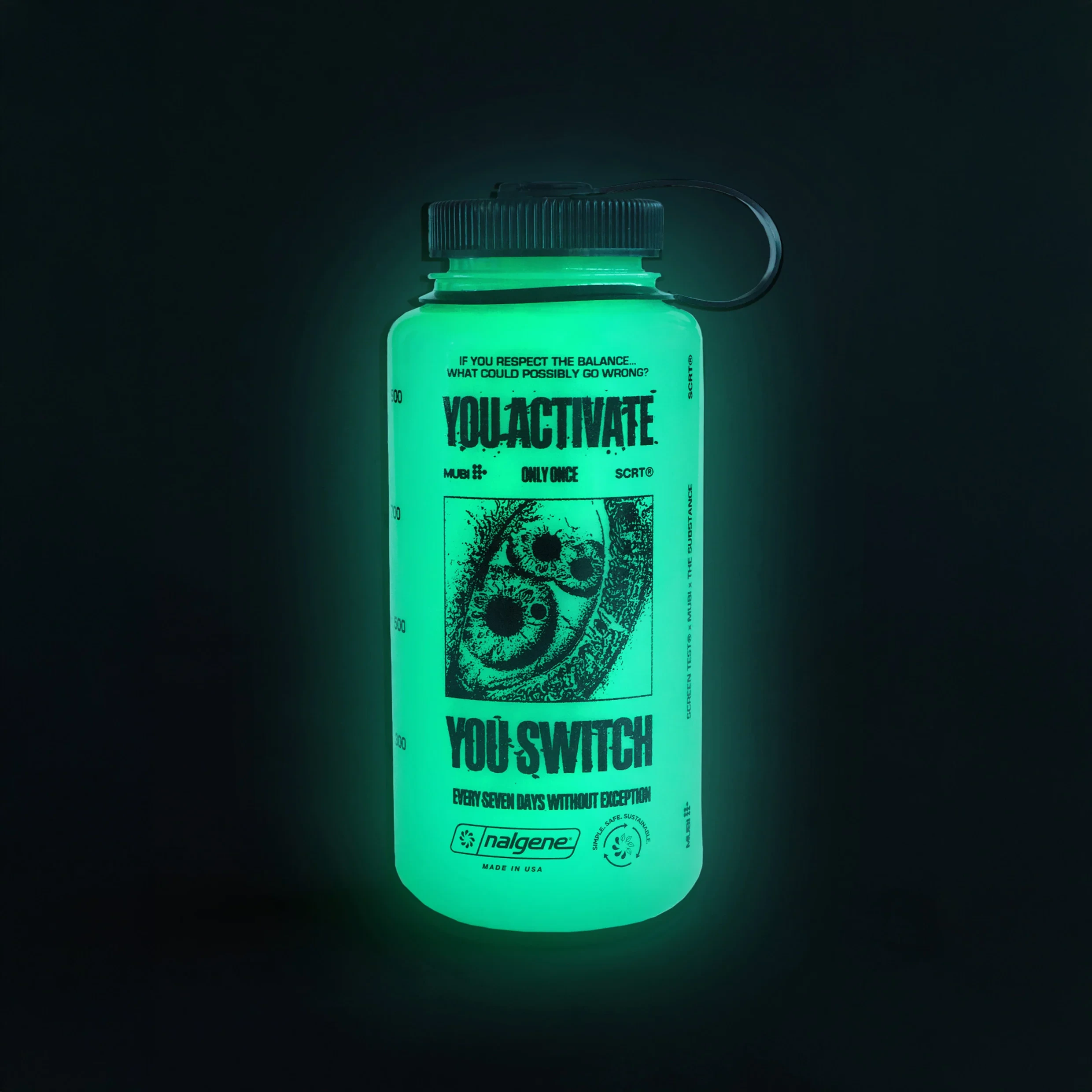 For the UK: MUBI x SCRT Activator Bottle - Glow Green and MUBI x SCRT Sticker Set