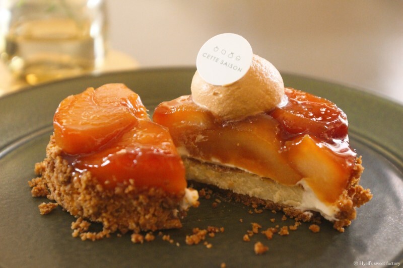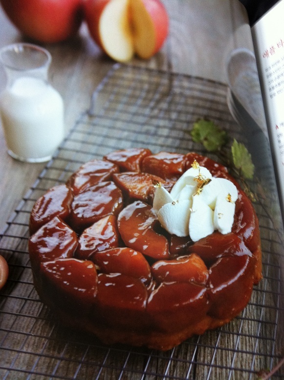 사과 위로 페이스트리 반죽을 올려 구운 후 뒤집어 구워내었는데,