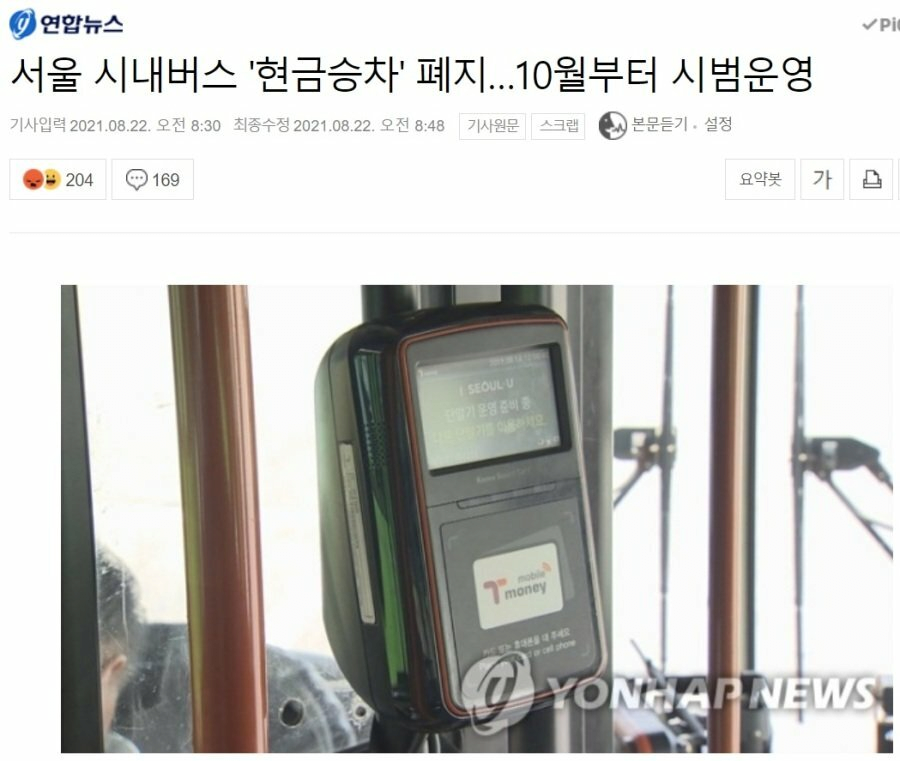 서울 버스의 현금 승차제를