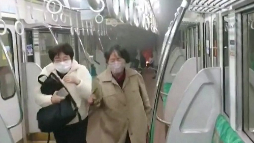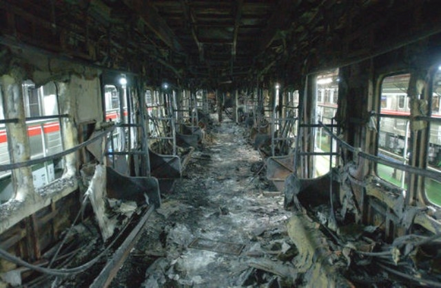 운행중이던 전철에 불을 지르고