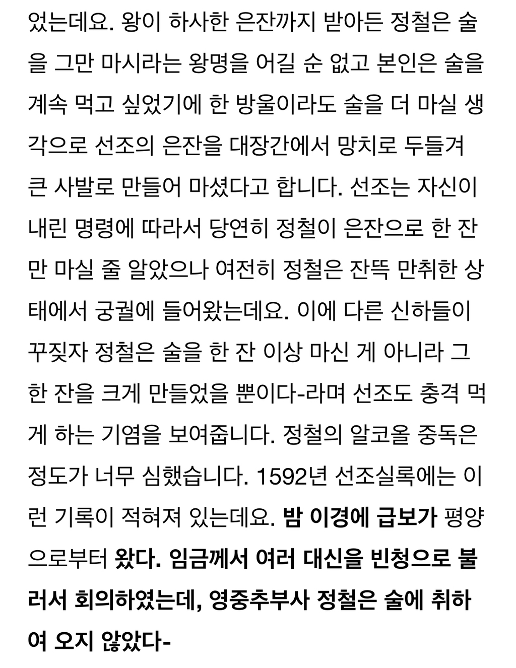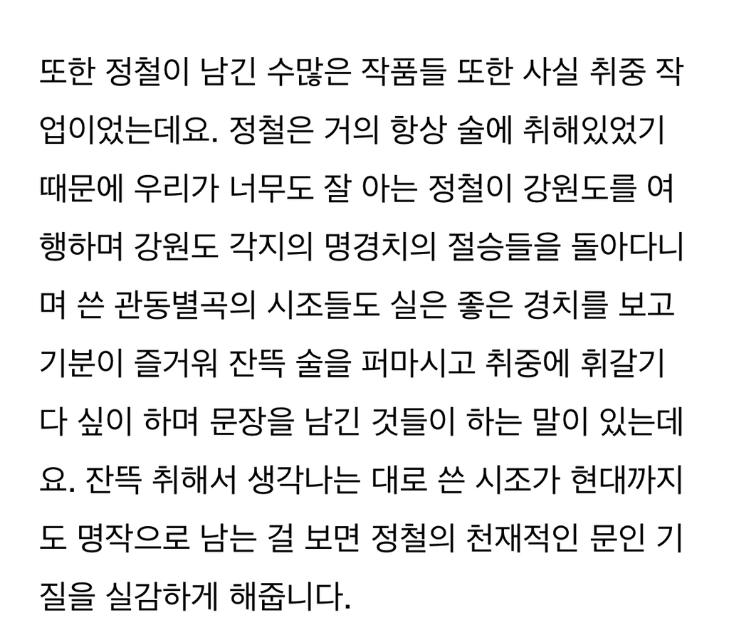 관동별곡도 술 먹고 썼다는 이야기가 있음