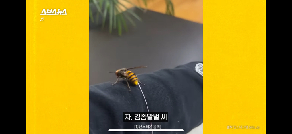 통에서 꺼내 한창 소개 중인데 탈주한 김좀말벌 씨