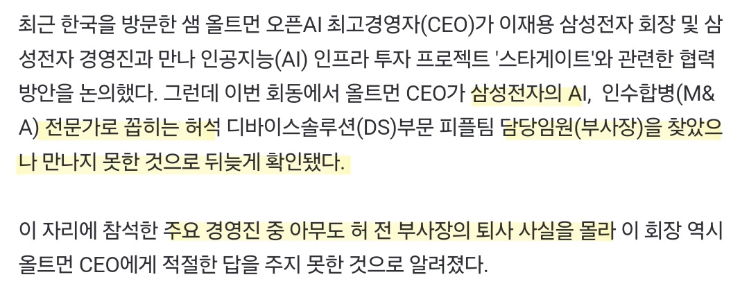 샘 올트먼이 삼성 찾아와서 만나려고 해서