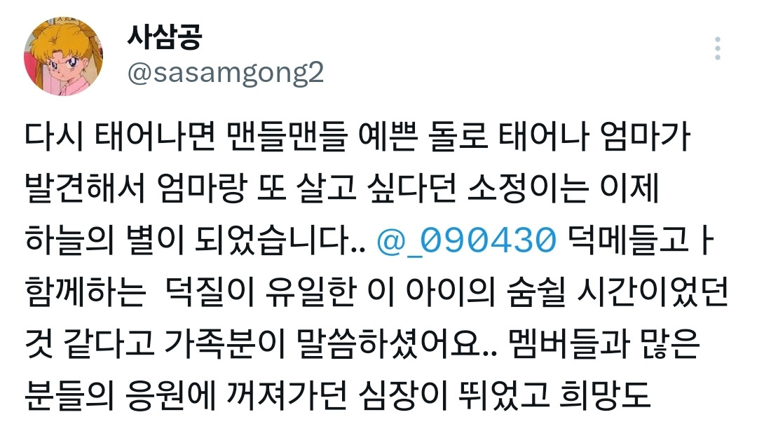모든 무명의 더쿠들아 아프지 말고 오래오래 행덕하길 바라