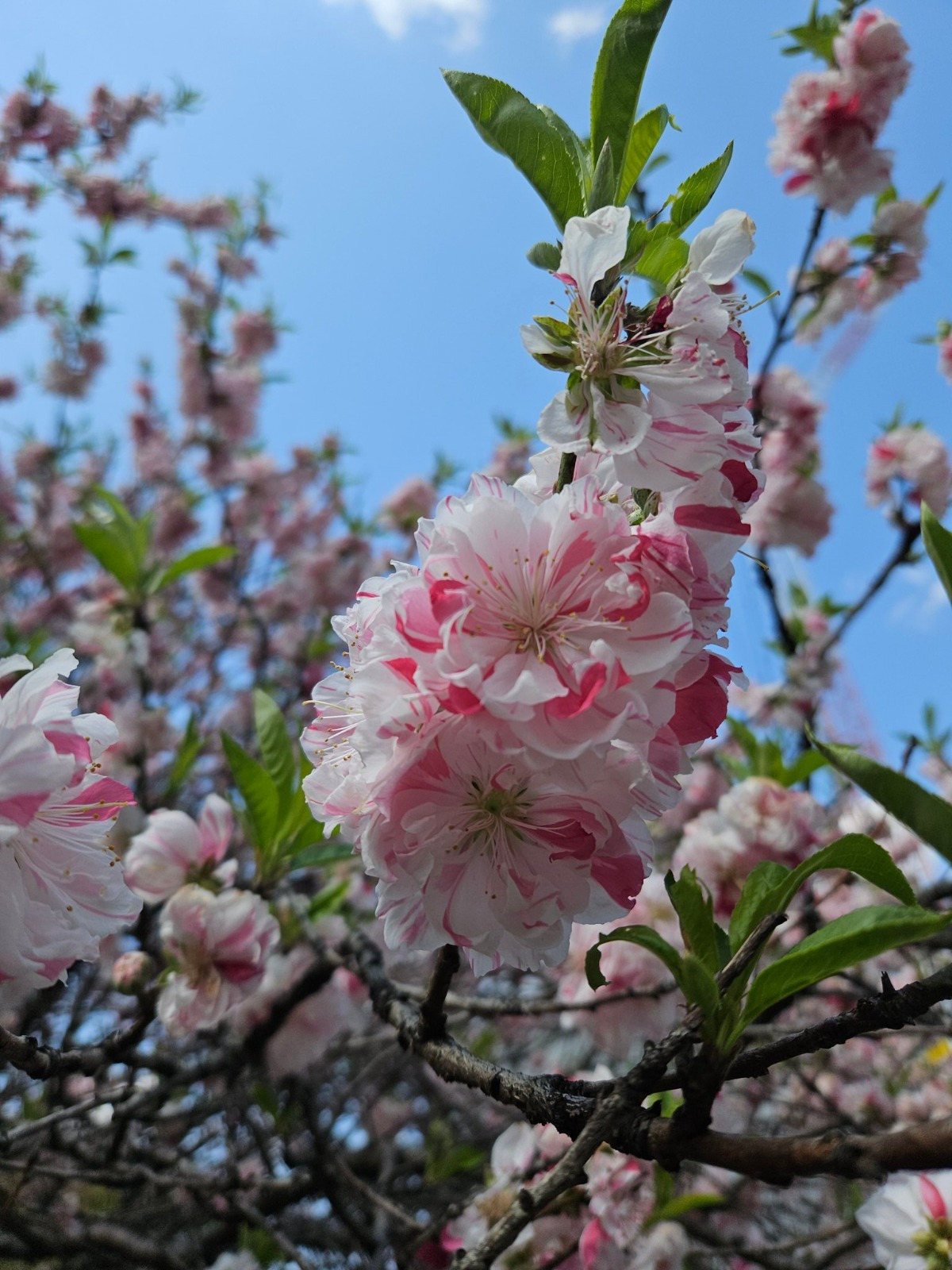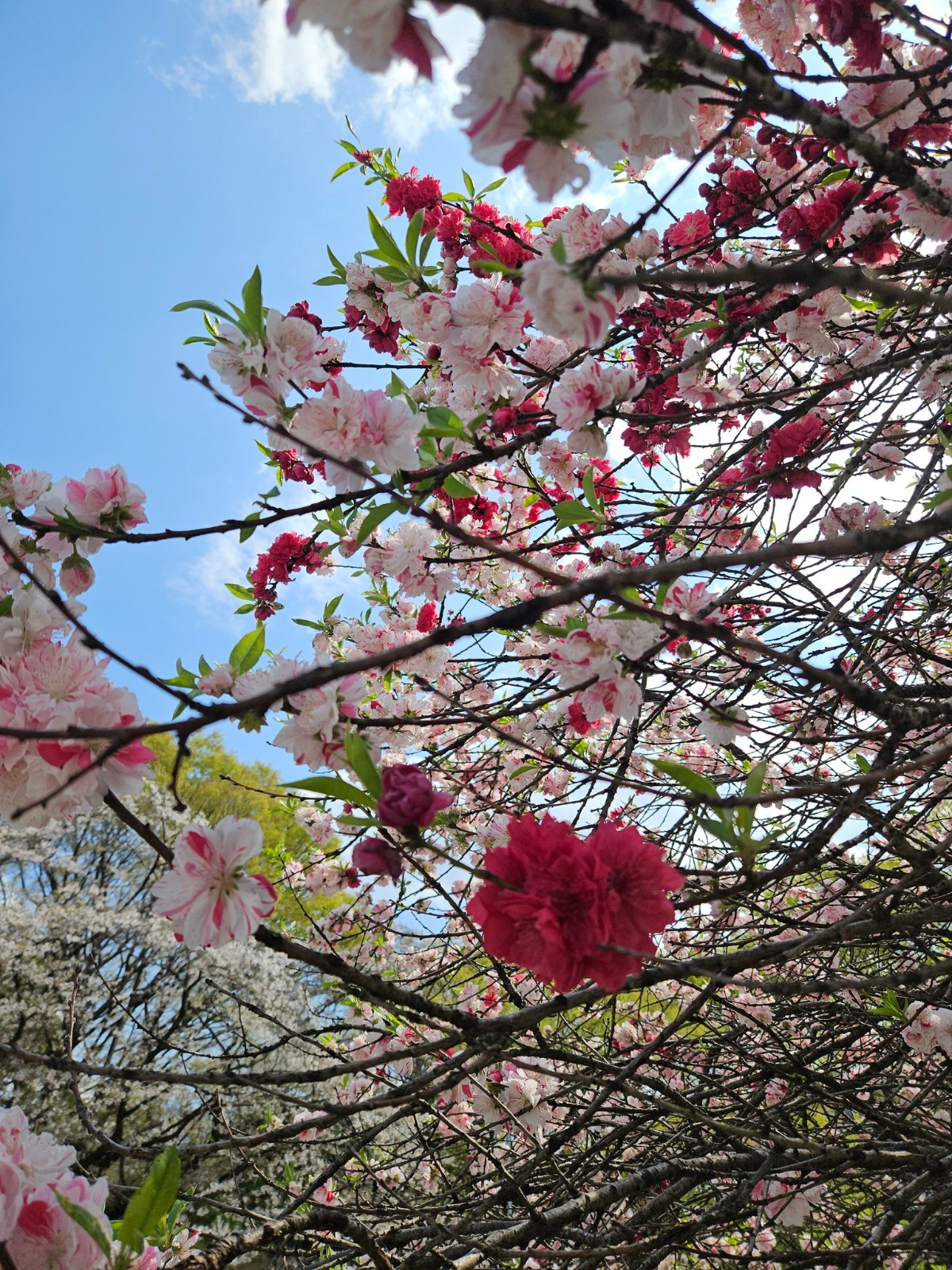 미인이 분을 반만 바른 것 같다는 삼색도화는 4~5월이 되면 색색의 겹꽃을 화려하게 피운다.